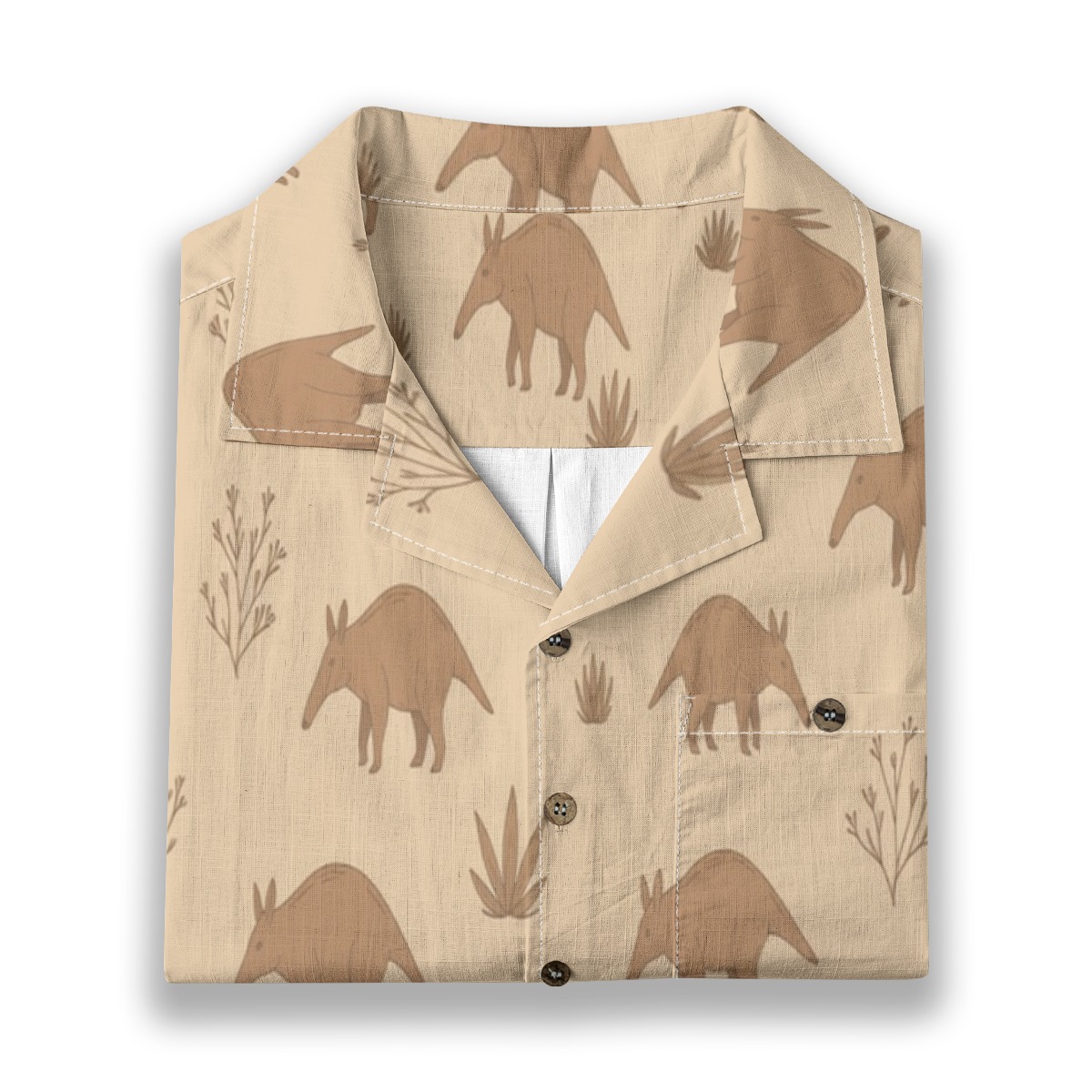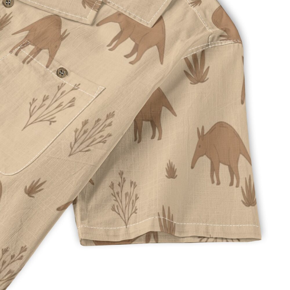 Playful aardvarks appear among tiny desert plants in a warm and airy pattern. Soft beige tones and light spacing create a breezy and sunlit atmosphere that feels relaxed and easygoing.