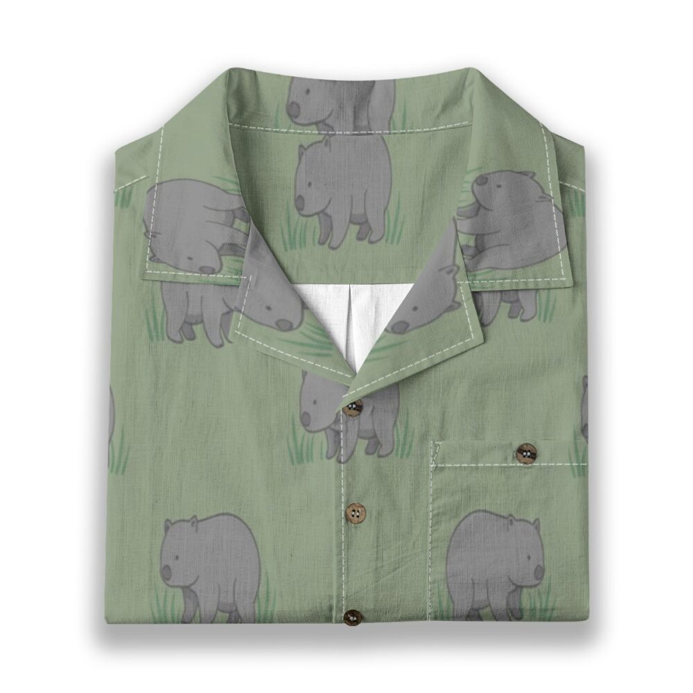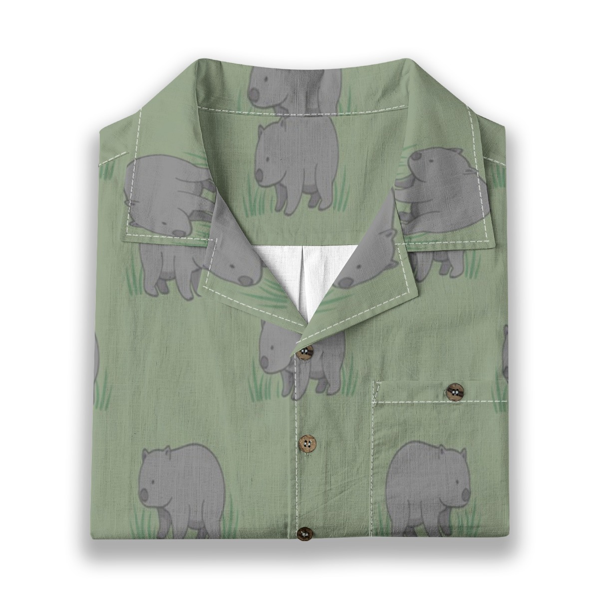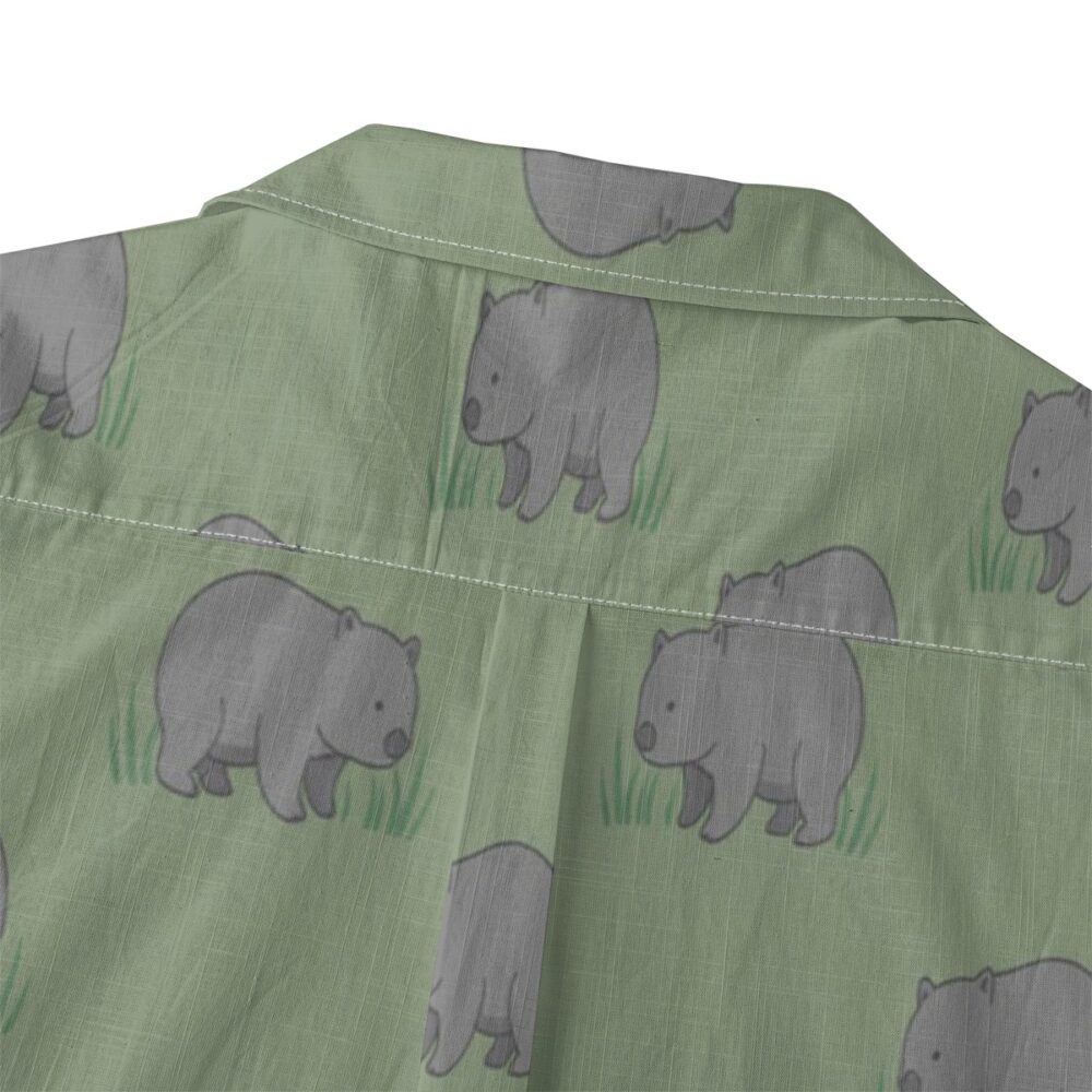 Cozy wombats rest among gentle grass elements in a calm and grounded pattern. Muted greens and soft grays create a peaceful and natural visual flow.
